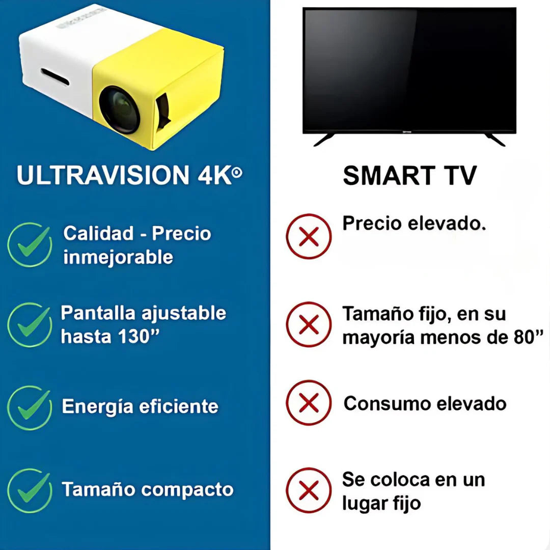 Con una potencia lumínica de 2.000 lúmenes ANSI, el Ultra Vision 4K ofrece una imagen brillante y nítida, ya sea en una habitación oscura o en exteriores bajo la luz del sol.
