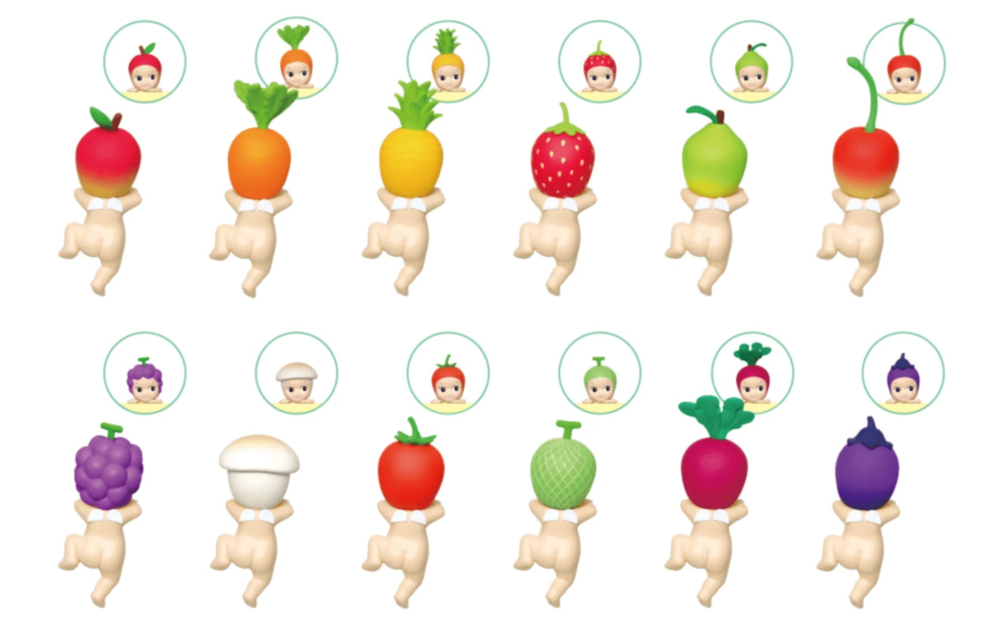 En esta entrega, Sonny Angel lleva un gorro veggie colorido de frutas, escalando en una adorable posición!